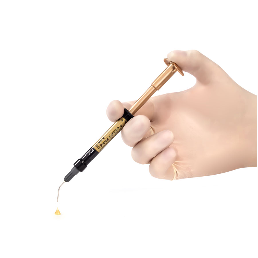 G-ænial Universal Injectable features dispensing tips with a long needle that can be curved simply by applying a light pressure with your fingers. This will give you access to any difficult posterior cavity!