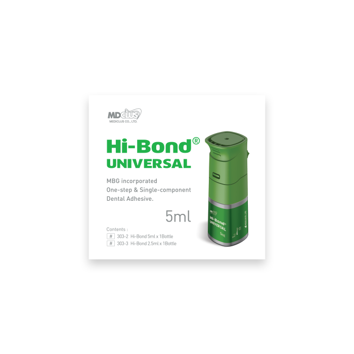 Hi-Bond™ is a MBG (mesoporous BAG) incorporated one-step dental adhesive. Hi-Bond™ can produce hydroxyapatite by contacting with saliva through BAG. It has sufficient bonding strength, remineralization effect and preventive effect on post-operative sensitivity.